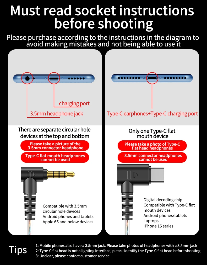 ?Fornecemos 2 plugues tipo "3.5mm AUX" e"Tipo C (chip digital), enviaremos de acordo com a imagem da opção que você comprou, obrigado!