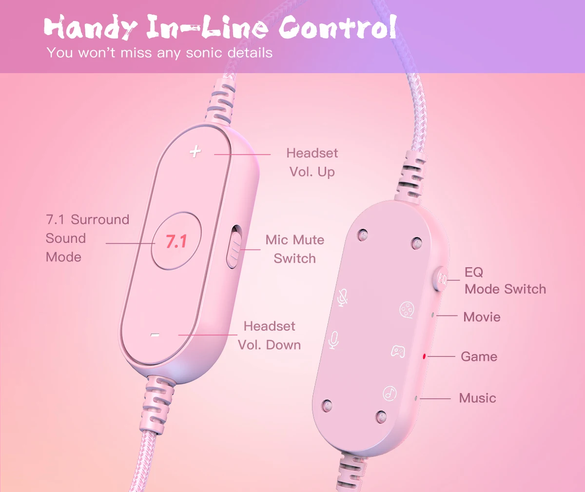 O painel de controle integrado no fone de ouvido permite ajustar facilmente o fone de ouvido para o volume suave e mudar o som surround.Seu modo 3-EQ permite selecionar modos de som para diferentes ocasiões, garantindo ótima qualidade de som e aumentando seu prazer.