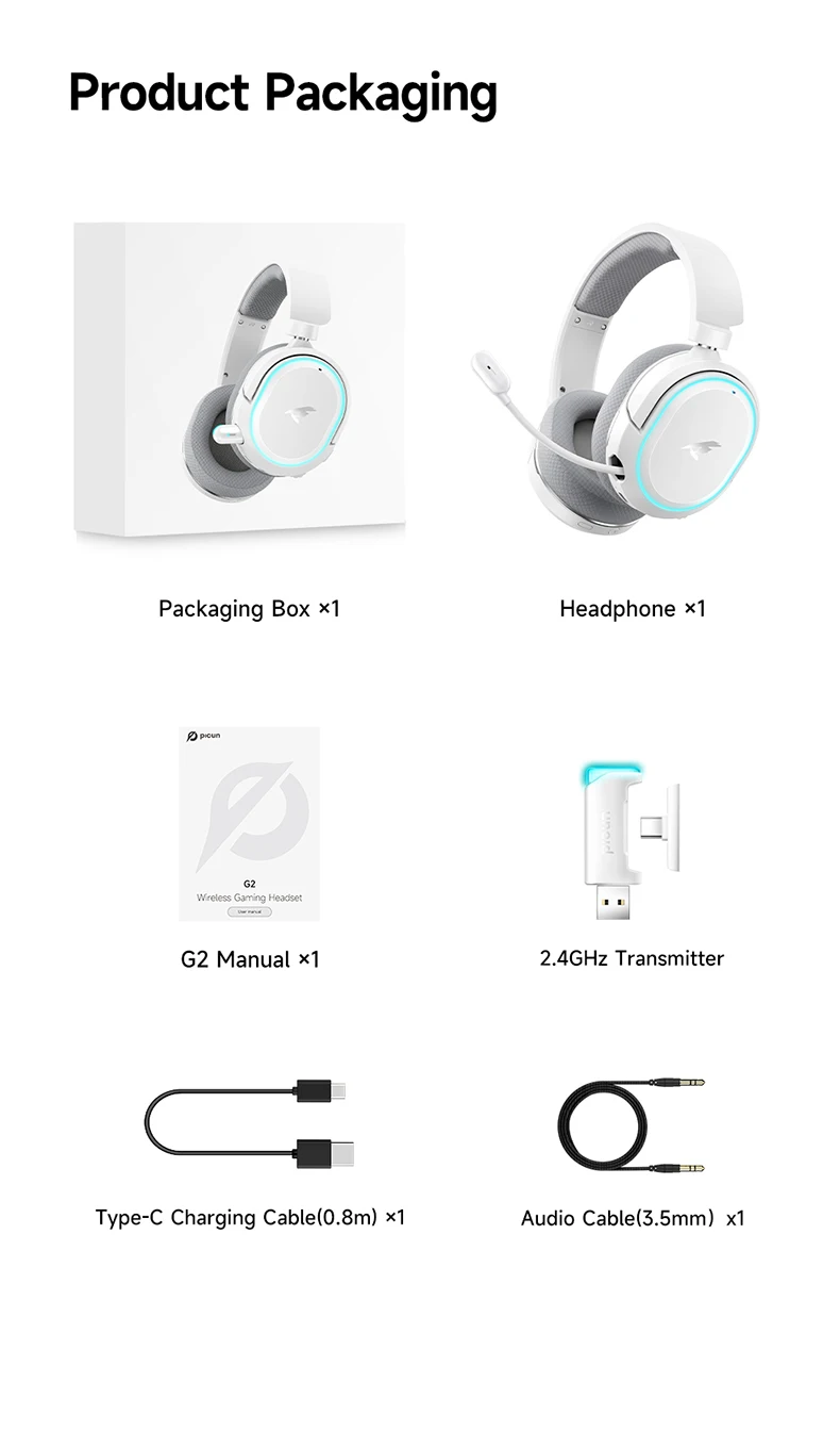 Ao contrário do Bluetooth, 2,4 GHz oferecem baixa latência e transmissão rápida de dados.PICUN G2 Adotou tecnologia sem fio 2.4G, junto com 5.3Wireless, menos de 5ms de atraso, que oferece uma experiência de jogo sem fio envolvente e sem atrasos.