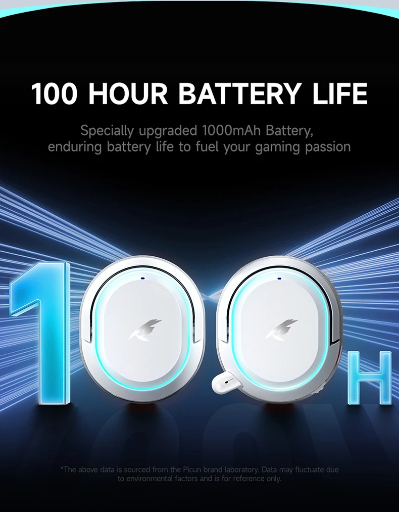 PICUN G2 possui som surround 7.1 integrado e efeitos sonoros duplos estéreo, pressione rapidamente o botão multifuncional para alternar para atender às suas necessidades de vários cenários de uso.Desfrute de uma experiência de áudio envolvente com filmes, jogos ou música, tudo em uma paisagem sonora totalmente envolvente.
